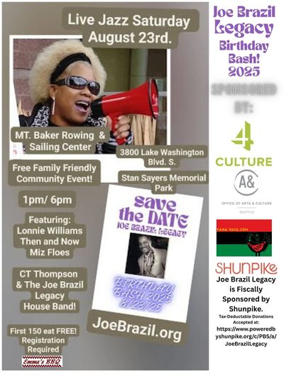 Saturday August 23rd. 1pm. - 6pm We're gathering at the Mt. Baker Rowing & Sailing Center 3800 Lake Washington Blvd. S, (Stan Seyres Memorial Park) on the lake to CELEBRATE JOE BRAZIL'S BIRTHDAY AND LEGACY!!!